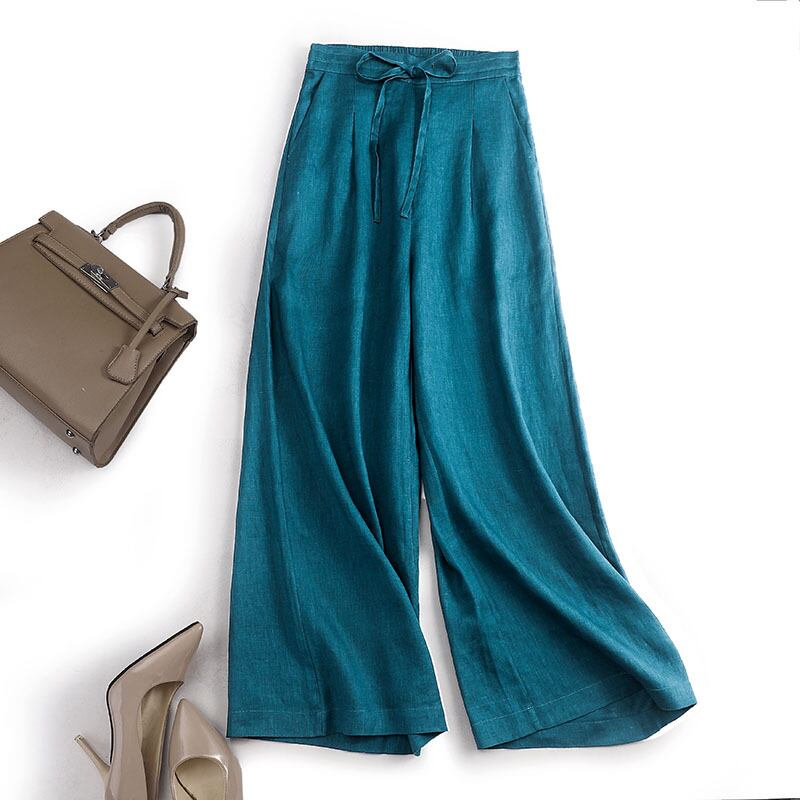 薄手のリネンワイドレッグパンツレディース2021カジュアルオールマッチルーズコットンリネンパンツレディースドレープハイウエストストレートレッグパンツ TB2-11 TB2-1119971621614