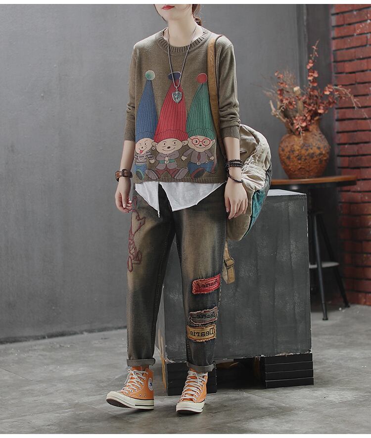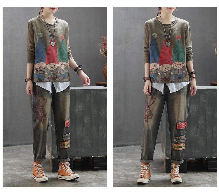 ファットシスターの新旧レトロカジュアルパンツ春秋パッチ刺繡ルーズラージサイズ伸縮性ウエストジーンズ 刺繍 エラスティック 大きめサイズ スプリング 春物 オータム 秋物 TB2-11 TB2-1169015426185