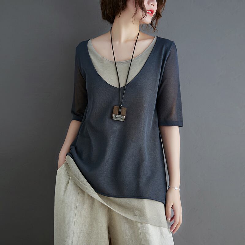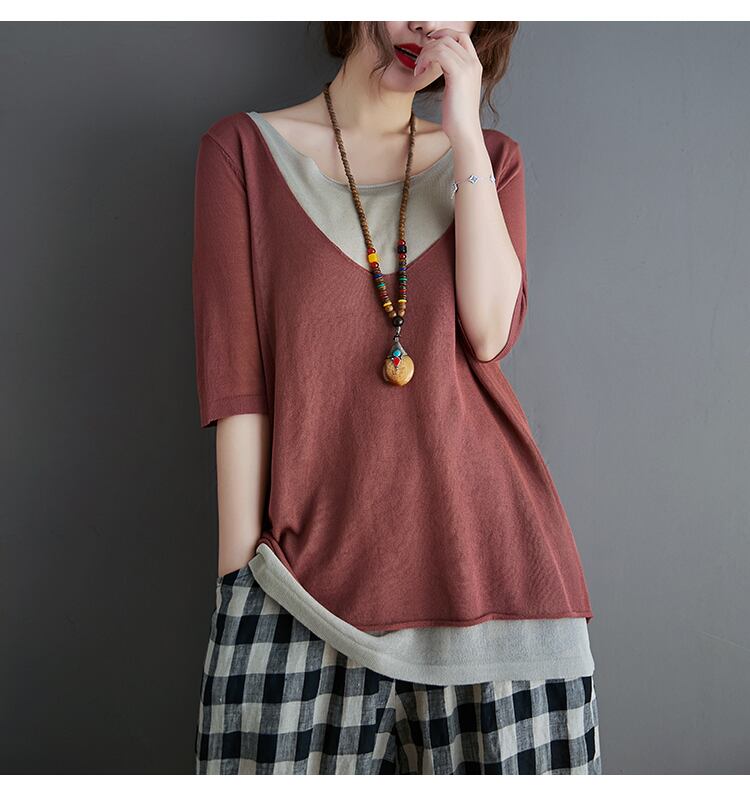 夏の新しいフェイクツーピースニットTシャツレディース半袖ルーズリテラシーアウターウェアハーフスリーブキャミソールコットンとリネントップ サマー 夏物 TB2-12 TB2-1247027107771