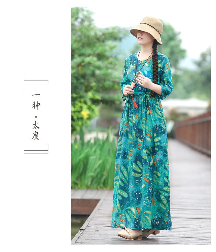 レトロな文学プラスサイズのレディースドレス2021年夏の新しい綿とリネンのプリント5点袖ウエストビッグスイングスカート コットン 大きめサイズ サマー 夏物 TB2-12 TB2-1261633273208