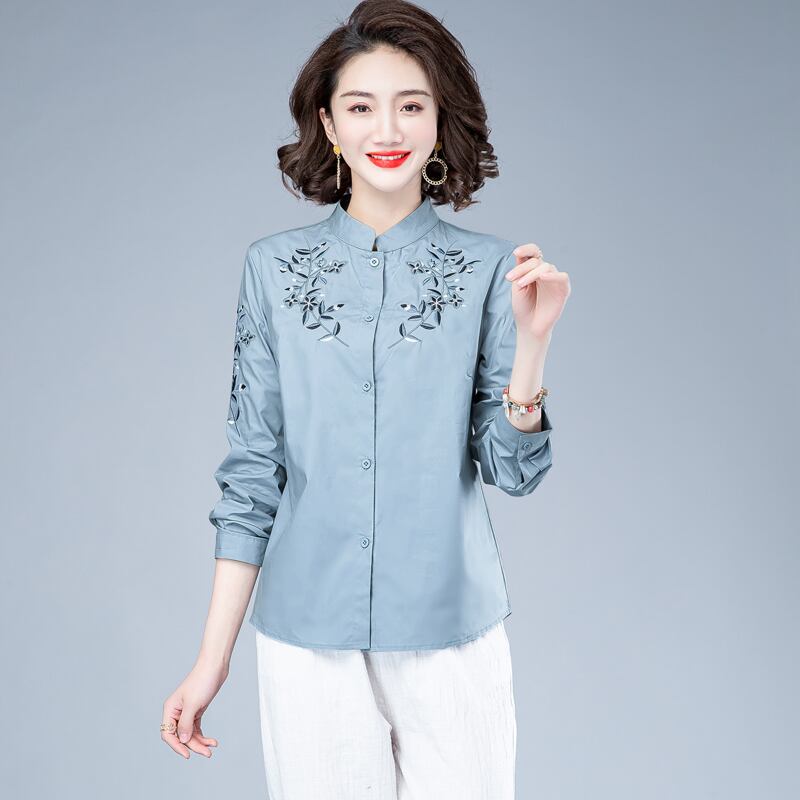 2021年春のレトロな刺繡の綿とリネンのシャツ野生の文学的なルーズで薄い長袖シャツレディースカーディガンシャツ ロング コットン 刺繍 スプリング 春物 TB2-12 TB2-1279245108480