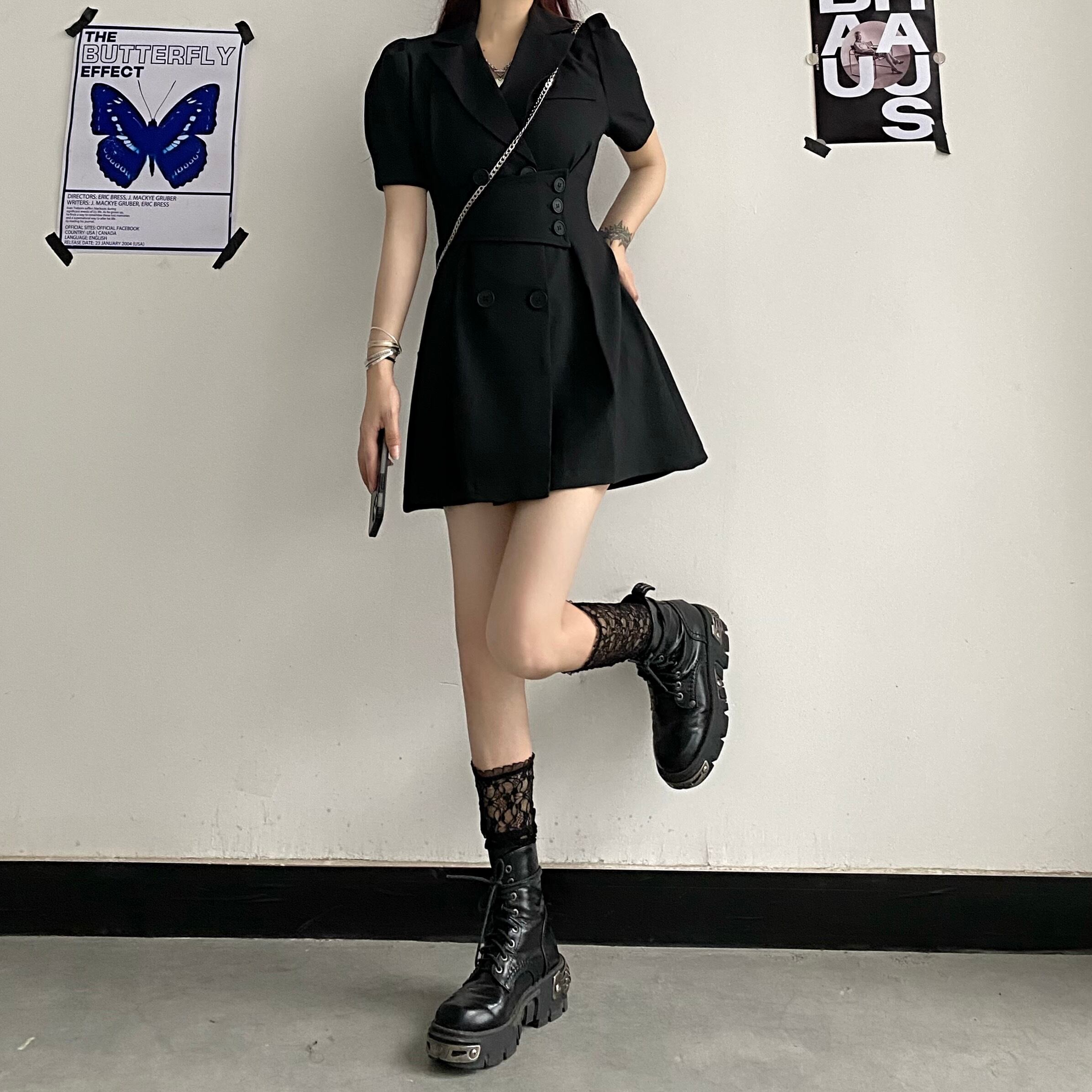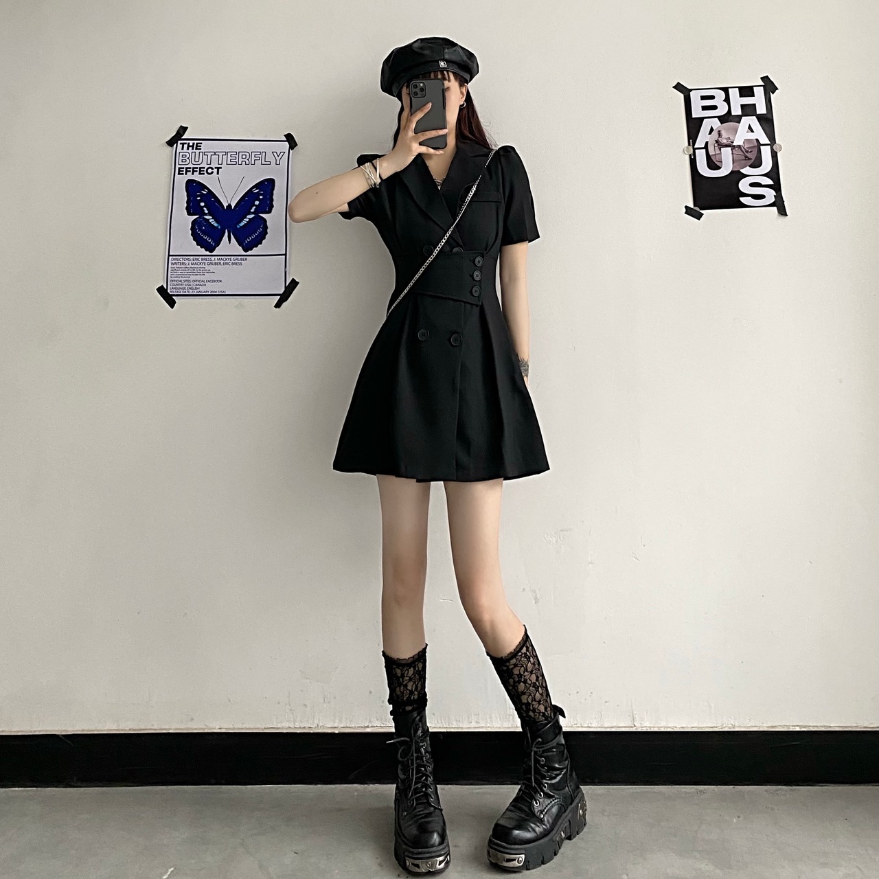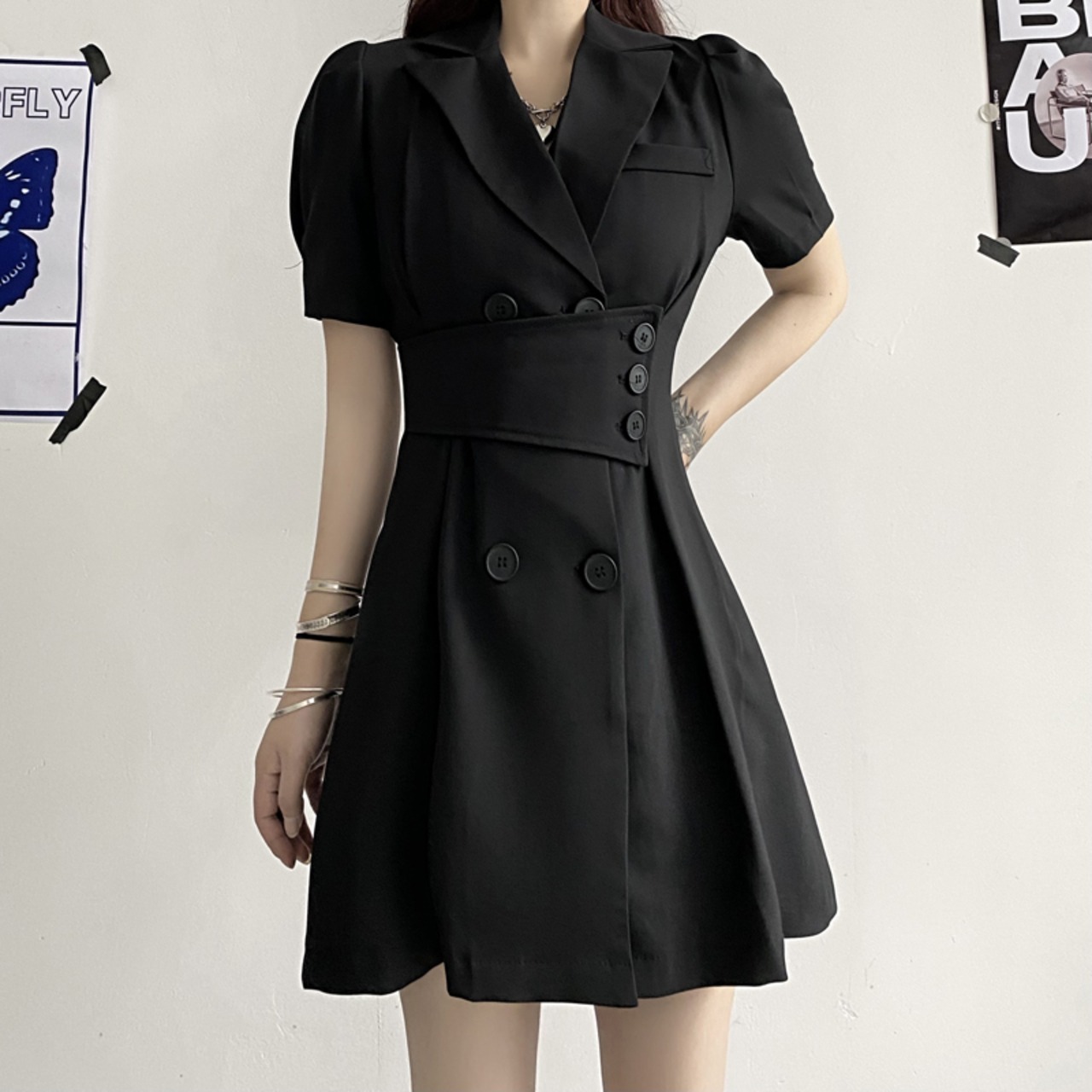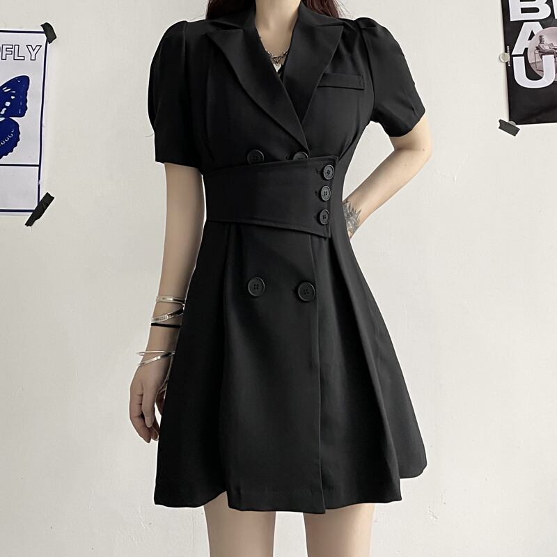 夏の新作スーツドレス女性太ったお姉さんは薄手スリムヘップバーンショートスカートラージサイズカバー肉Aラインスカート200kg 大きめサイズ サマー 夏物 TB2-10 TB2-1072533526867