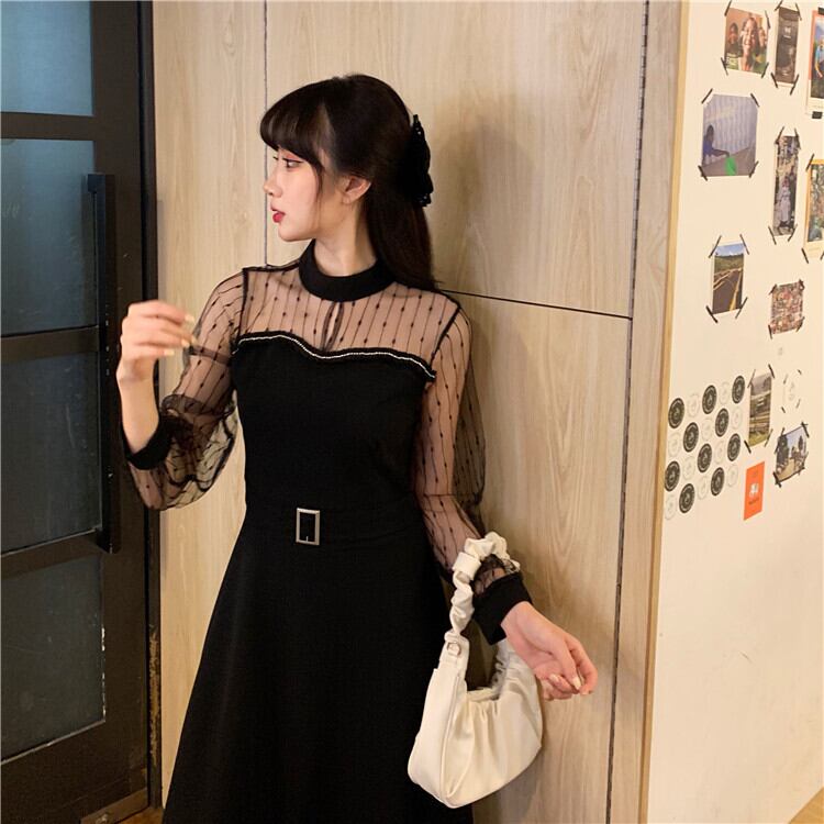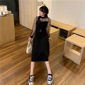 2020年秋の新しいセクシーな年齢を減らすネットガーゼドレスレトロな西洋の気質カバー肉黒ロングスカートプラスサイズの太った姉妹 ブラック 大きめサイズ オータム 秋物 TB2-10 TB2-1085154147804