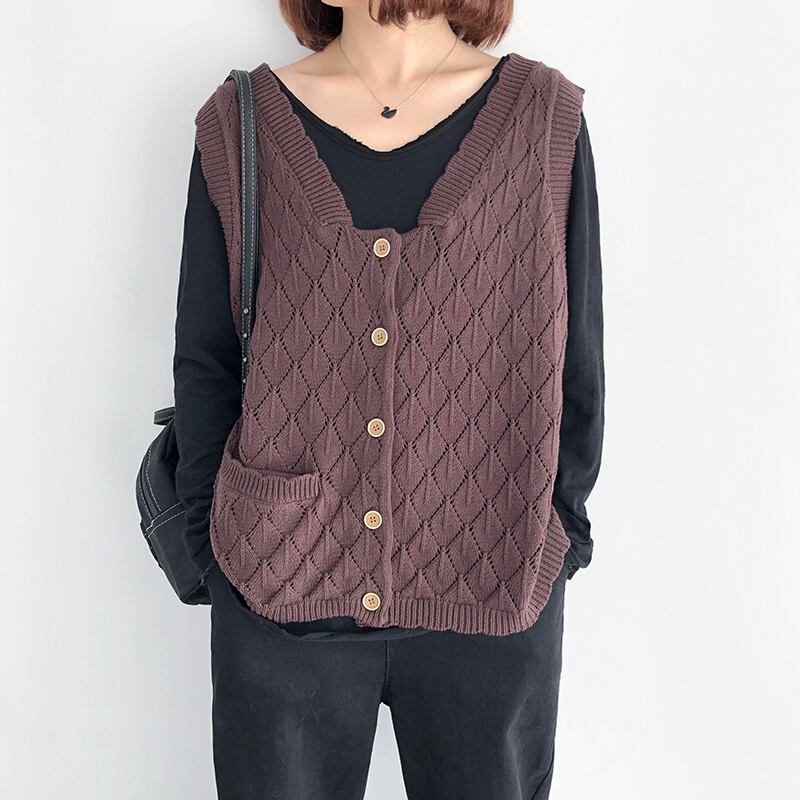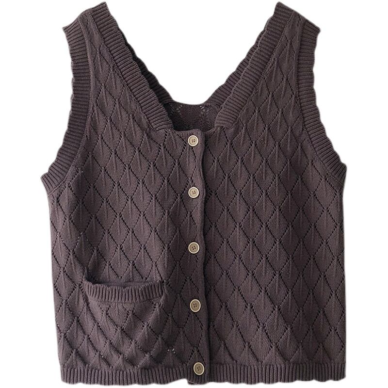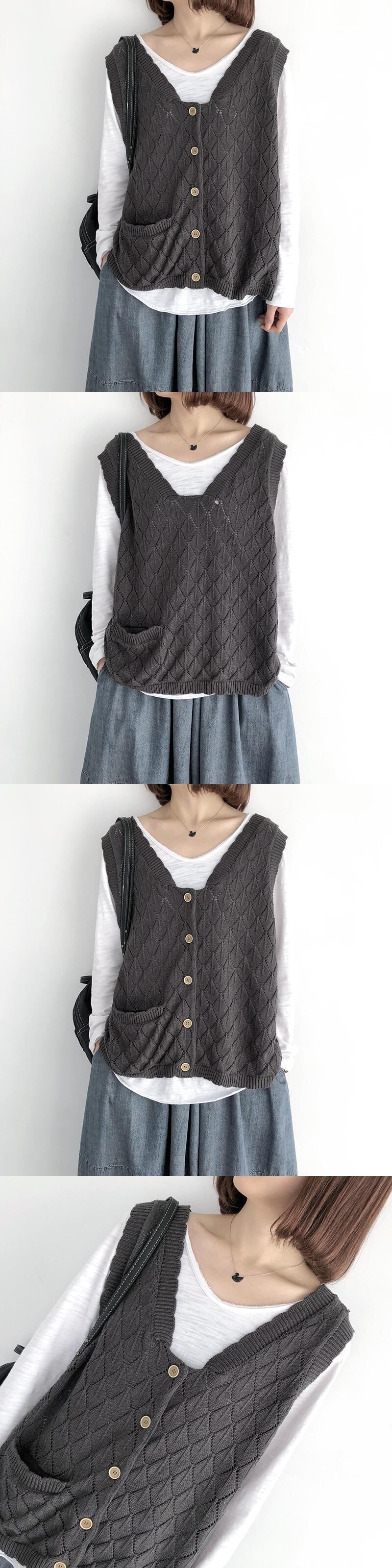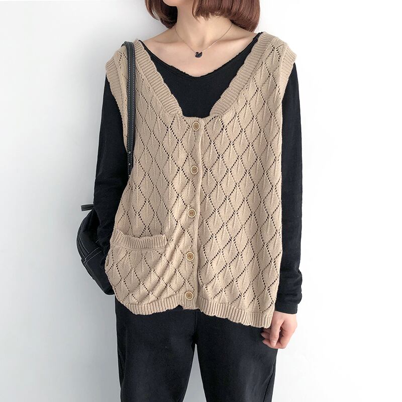 春と秋の女性のチョッキベストは、短いニットのベストジャケットで両側にルーズなVネックの中空ノースリーブチョッキを着用します ショート スプリング 春物 オータム 秋物 TB2-9 TB2-918368151411