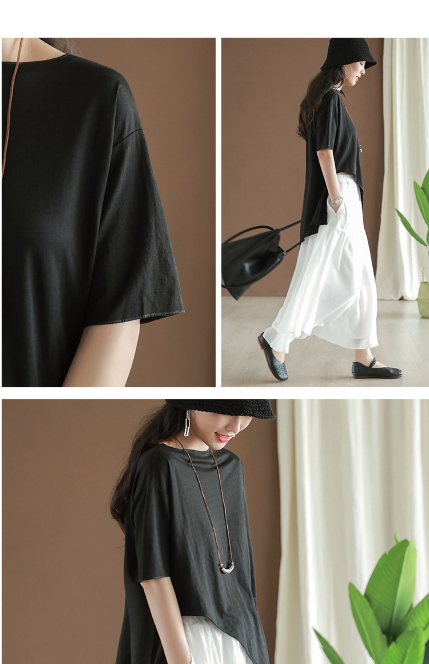 ラージサイズレディース裾イレギュラーTシャツレディースサマーニュー無地ルーズリテラリーレジャーラウンドネック半袖シャツ 大きめサイズ 夏物 Oネック ソリッドカラー TB2-11 TB2-1194798308880