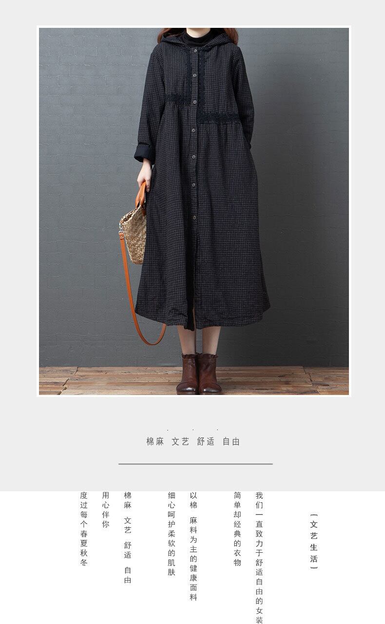 文学と芸術の秋と冬のバージョン大きなサイズの格子縞のフード付きウインドブレーカージャケット女性のミドル丈ルーズ厚手の暖かいカーディガンコート 大きめサイズ オータム 秋物 ウィンター 冬物 TB2-12 TB2-1298585008255