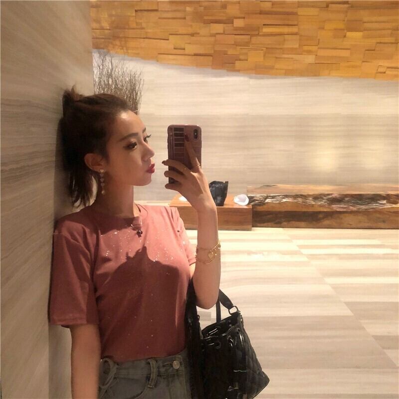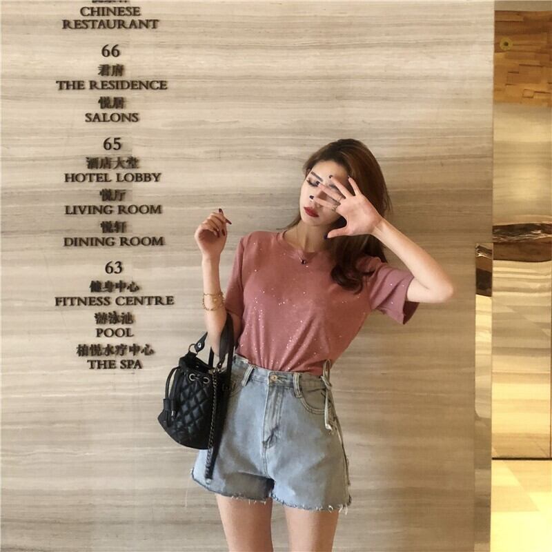 2020年春の新香港フレーバーシックなルーズラウンドネックきらびやかな半袖Tシャツ学生ショートトップ婦人服 スプリング 春物 Oネック TB2-6 TB2-621644293441
