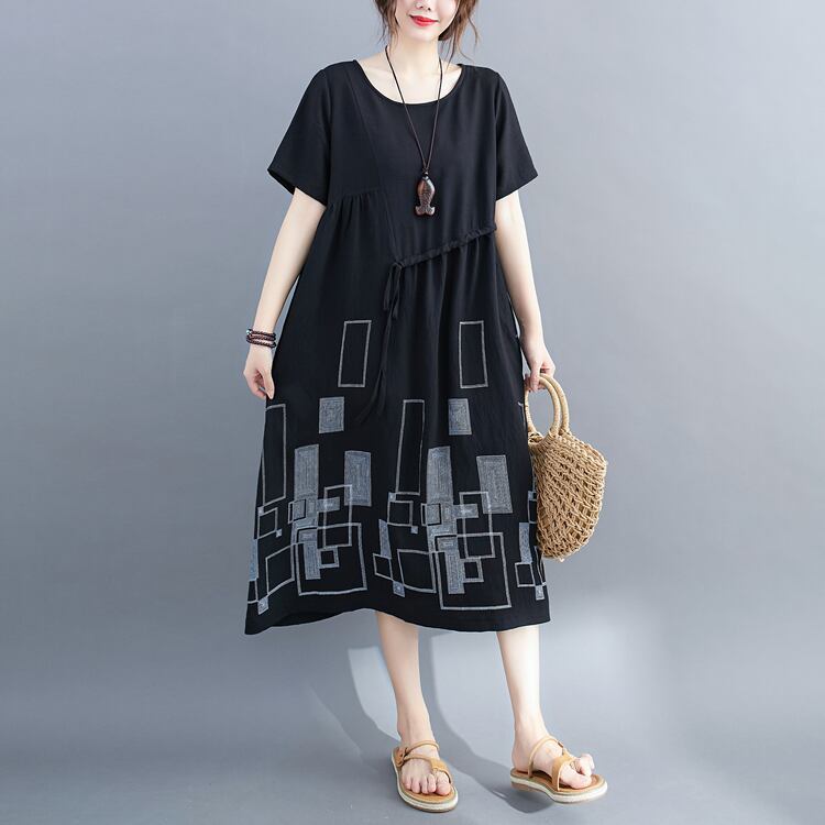 プラスサイズの女性のスリムファットドレス2020夏の新しいカジュアルカバー腹痩身ドローストリングウエストミドル丈スカート 大きめサイズ サマー 夏物 TB2-8 TB2-815329229009