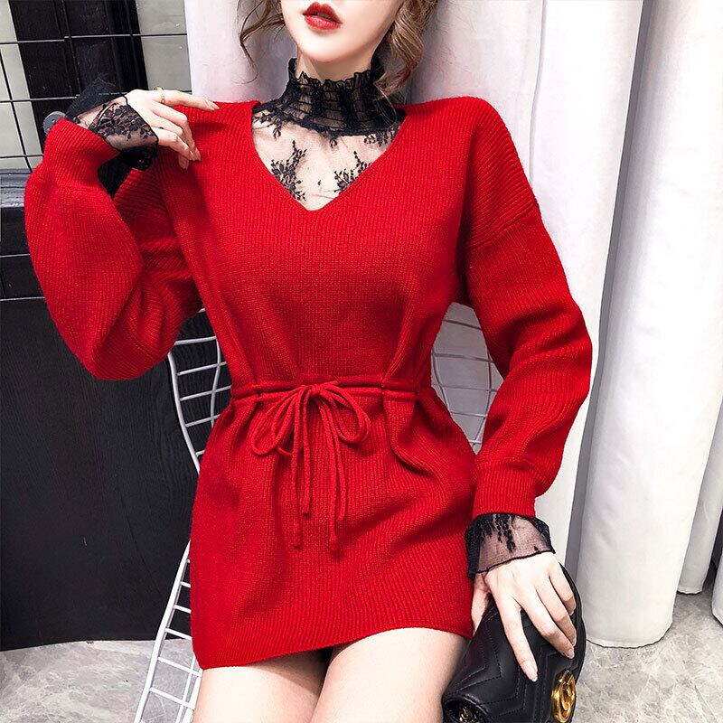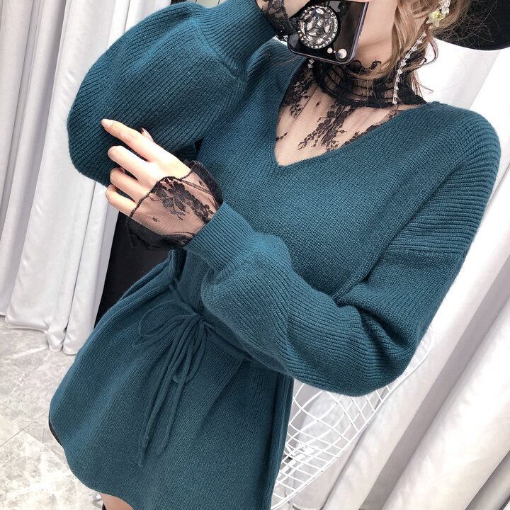 ファットシスターリトルセクシースリミングセーターボトミングシャツレディースエインスタイルレースステッチニットセーターカバーベリートップラージサイズ 大きめサイズ TB2-10 TB2-1056165443833
