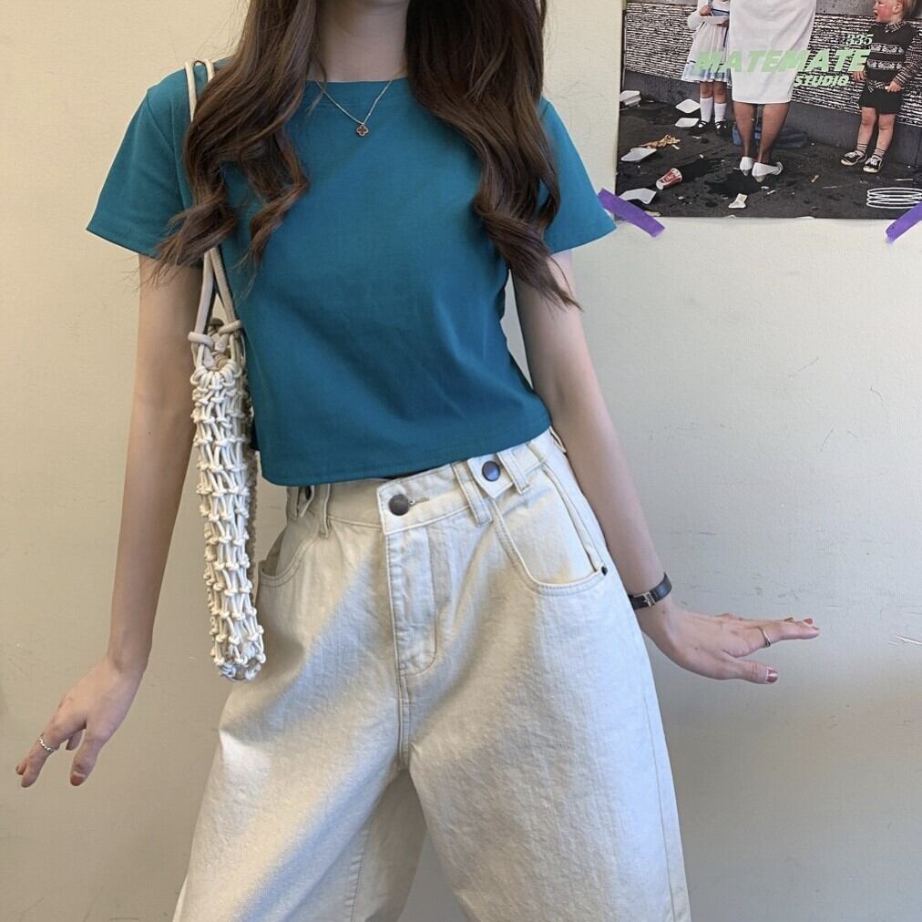 ホワイト半袖Tシャツレディース2021年夏ニュースタイルブラックルーズハイウエストクロップドショートトップスインタイド ハイウェスト サマー 夏物 TB2-6 TB2-636842069372