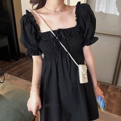 夏のフレンチレトロドレス女性プラスサイズ女性の半袖ウエスタン気質は細いストラップレスリトルブラックドレス太った姉妹mmでした 大きめサイズ サマー 夏物 TB2-10 TB2-1016161626728