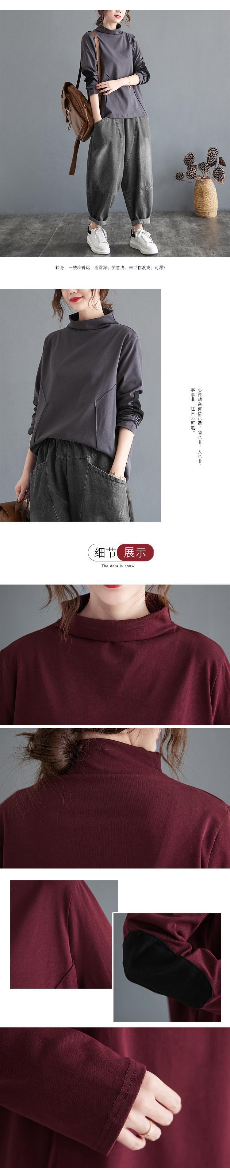 2021年春新作ルーズラージサイズ長袖ハイネックセーター文芸女子カラーマッチングパッチオールマッチカジュアルトップス ロング 大きめサイズ スプリング 春物 TB2-12 TB2-1251622628677