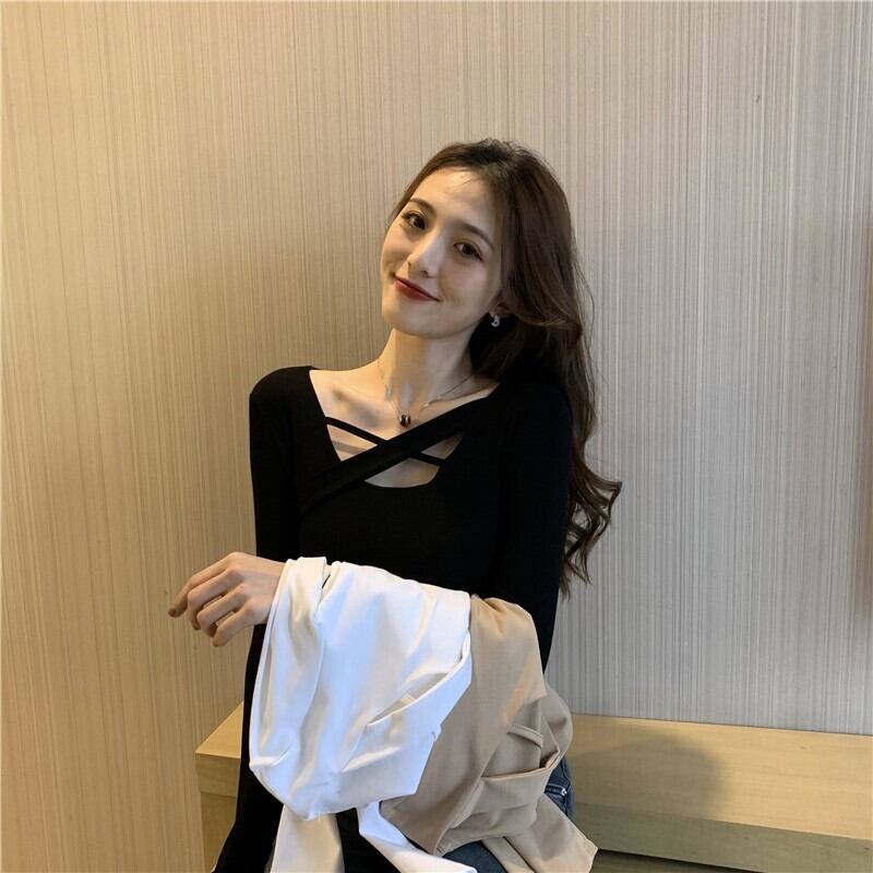 黒のボトミングシャツ春と秋の薄片2021新しいショートトップ服女性のデザインセンスTシャツセクシーな内側 ブラック スプリング 春物 オータム 秋物 TB2-6 TB2-613376352473