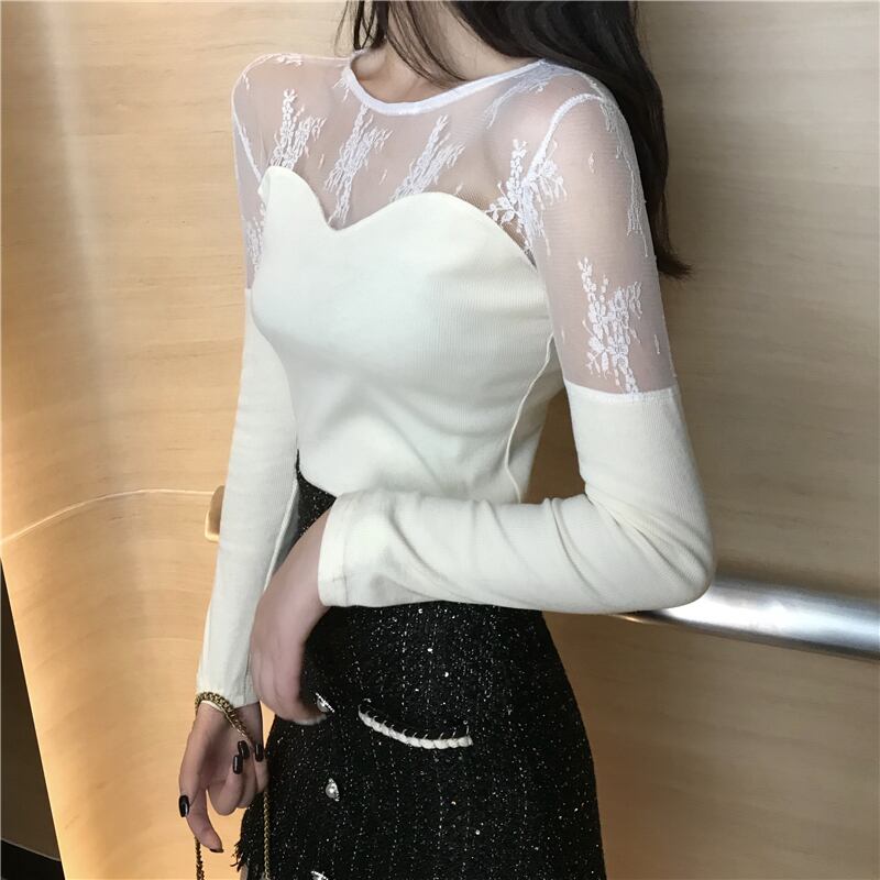 秋冬のレースステッチボトミングシャツレディースセーターニットセーターの非常に妖精は肩のトップとサイズの太いmmを薄くしていました 大きめサイズ オータム 秋物 ウィンター 冬物 TB2-10 TB2-1054919652555