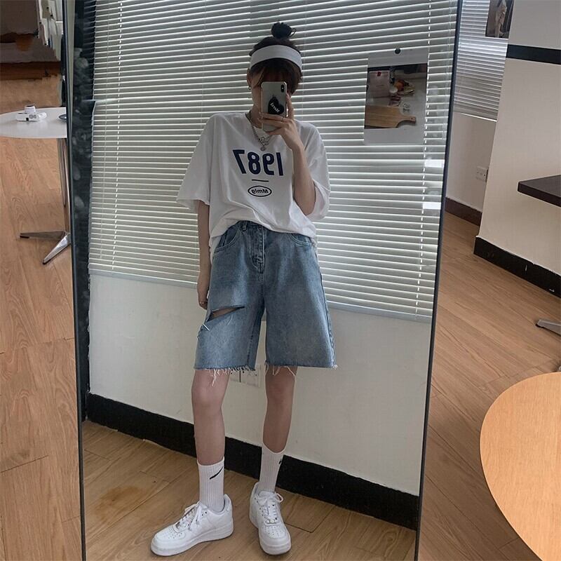 レトロリッピングライトカラージーンズパンツカジュアルパンツレディースサマーハイウエストルーズワイドレッグパンツショーツパンツ ハイウェスト レッド 夏物 ブルマー TB2-6 TB2-637115361887