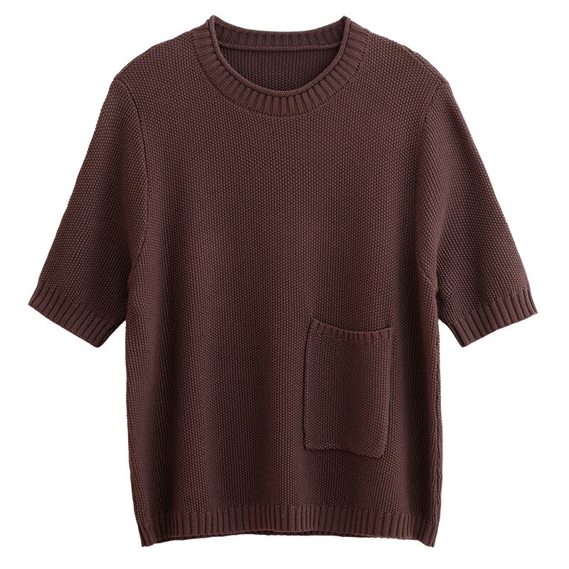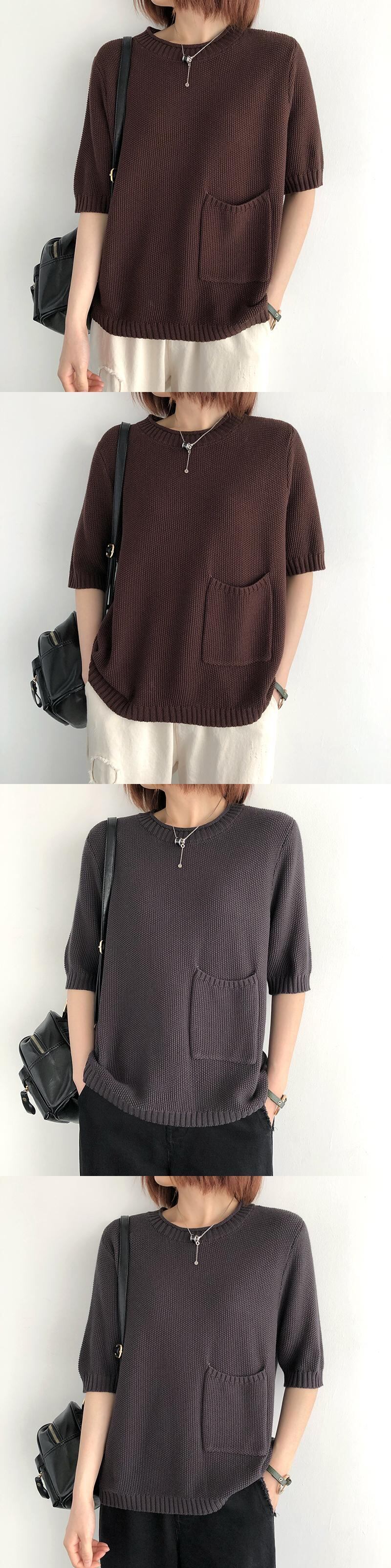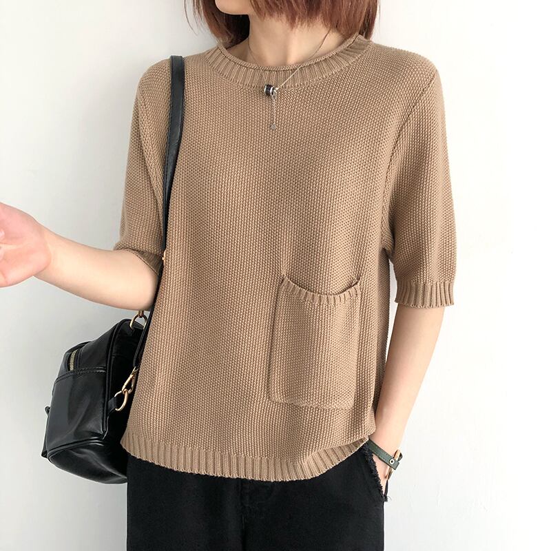 半袖セーター女性の夏の新しいスタイルの文学的なルーズラウンドネック半袖シャツ無地プルオーバー5ポイントスリーブボトミングシャツ サマー 夏物 Oネック ソリッドカラー TB2-9 TB2-941445800944