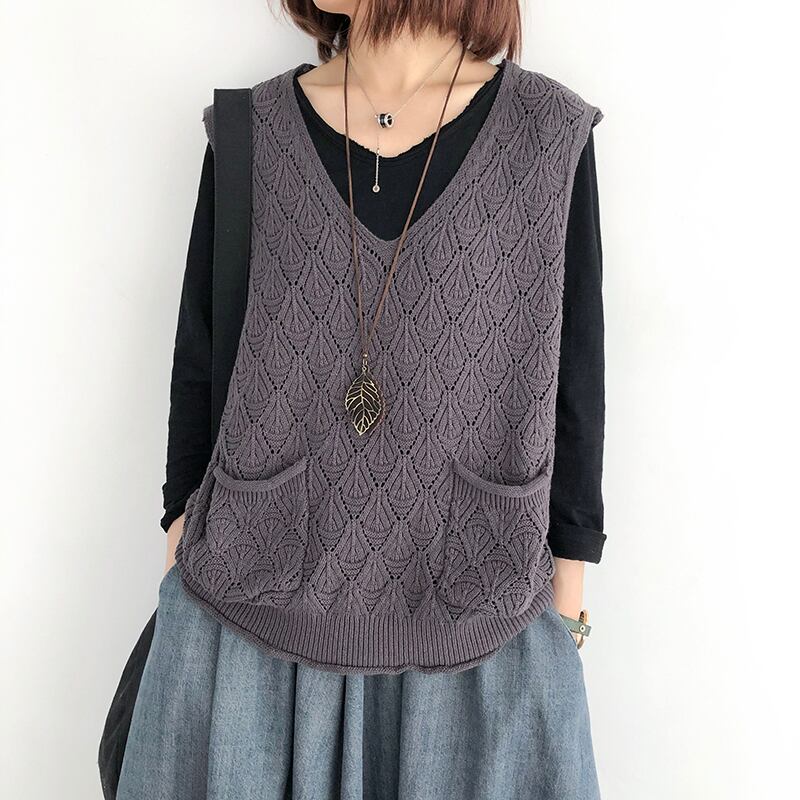 女性のニットベストベスト春2021ルーズVネック中空アウターノースリーブチョッキラージサイズプルオーバーベスト 大きめサイズ スプリング 春物 TB2-9 TB2-916318408464