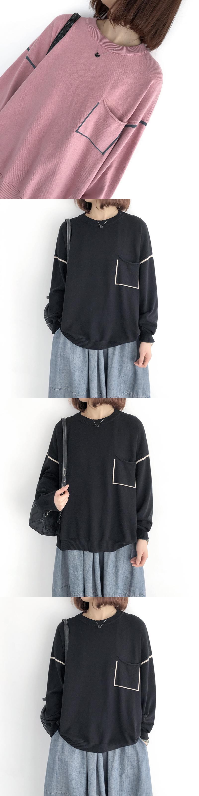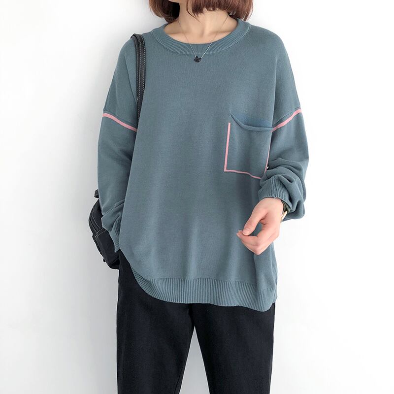 ニットセーター女性ルーズラージサイズカジュアルラウンドネック長袖ボトミングシャツ文学オールマッチ薄いカラーブロッキングプルオーバーセーター ロング 大きめサイズ Oネック TB2-9 TB2-92264401385