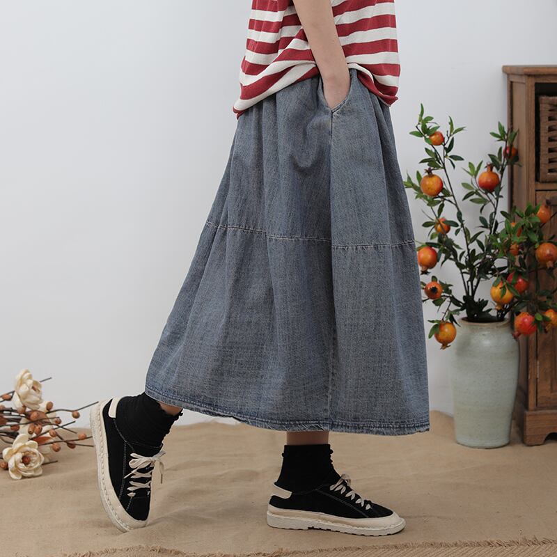 デニムスカート女性春秋新作ルーズ無地ハイウエストAラインスカートリテラリーレトロラージサイズミドル丈スカート ハイウェスト 大きめサイズ スプリング 春物 オータム 秋物 ソリッドカラー TB2-9 TB2-926854057200