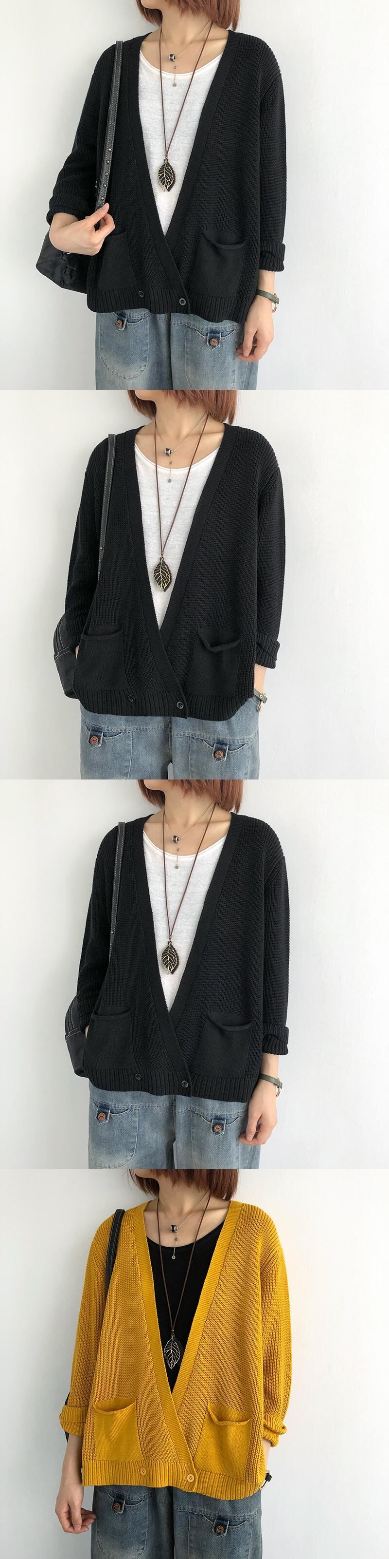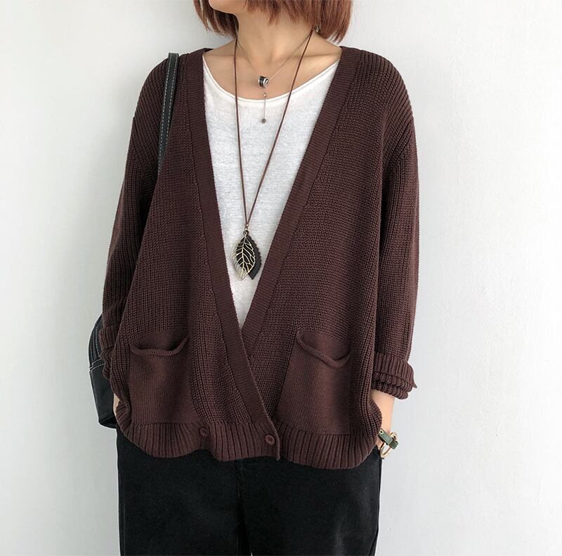 秋の新作文芸レトロウールカーディガンルーズビッグVネック無地ショート長袖ニットジャケットレディーストップス ロング オータム 秋物 ソリッドカラー TB2-9 TB2-926585766503