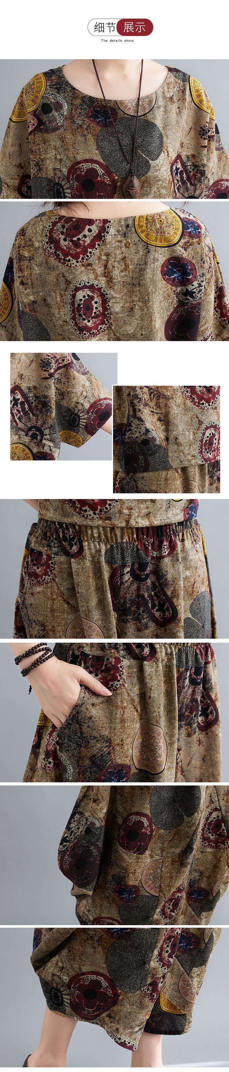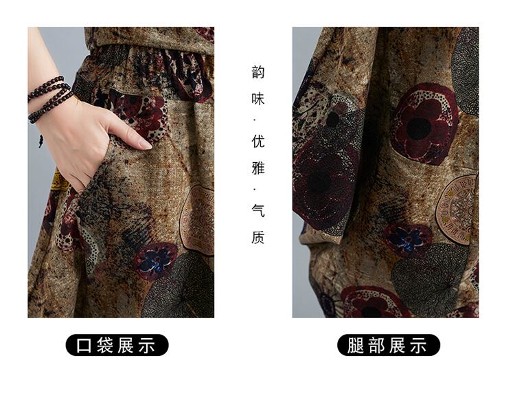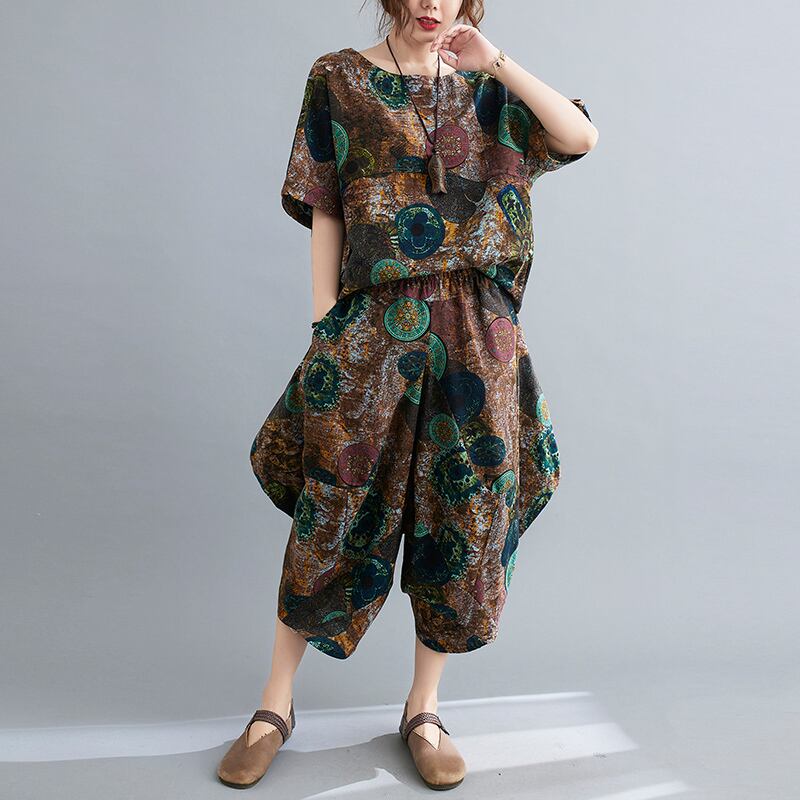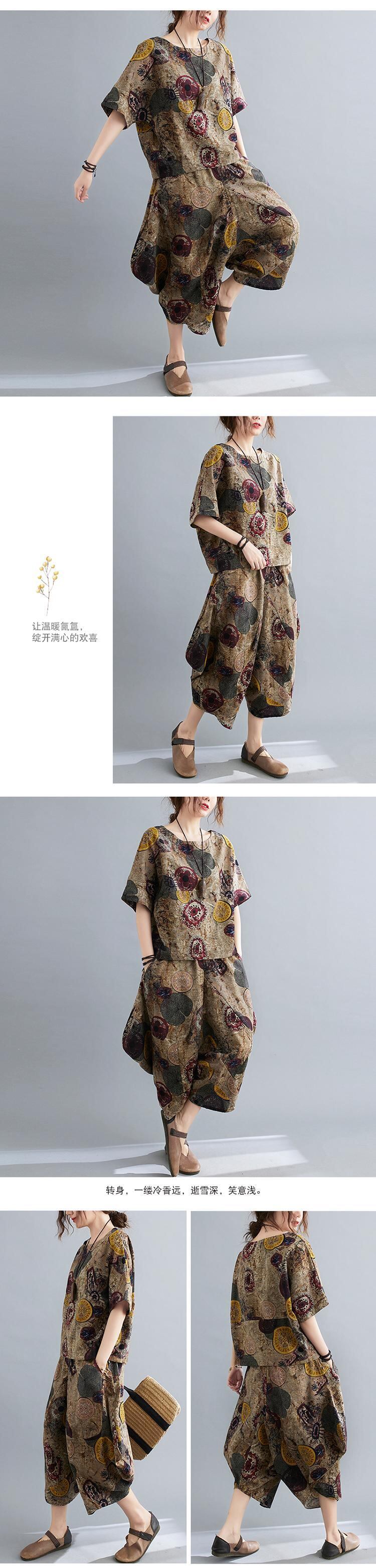 プラスサイズの女性の太った姉妹ルーズプリントブラウス7ポイントワイドレッグパンツ文学スリムスーツ2021夏新しい 大きめサイズ サマー 夏物 TB2-271826089447