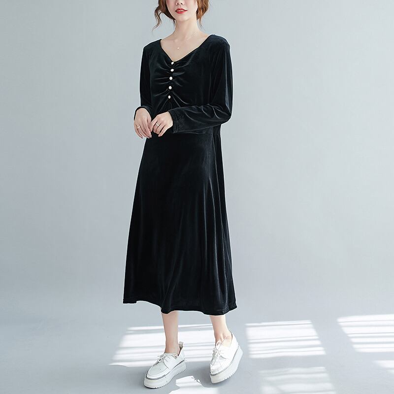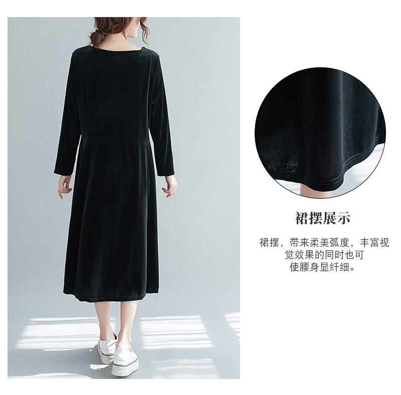 ファットシスター、ウエスタンスタイル、プラスサイズのドレス、ルーズで薄い女性、年齢制限、フォールドベルベットミドル丈スカート、2021年春 大きめサイズ スプリング 春物 TB2-215594801509