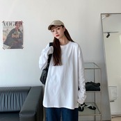 右米春秋新作白Tシャツボトミングシャツ女性ルーズで用途の広い長袖白Tラウンドネックコットントップス ロング ホワイト スプリング 春物 オータム 秋物 Oネック TB2-6 TB2-62135165484