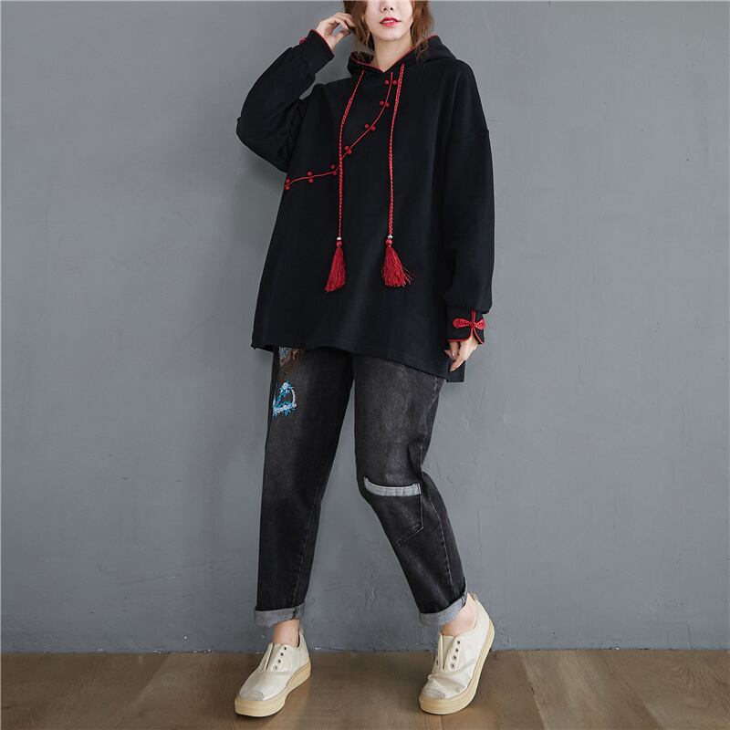 太った女性は大きなサイズのフード付きトップスを緩めます女性の文学と芸術レトロディスクバックル斜めプルオーバーセーター2021年秋冬新作 大きめサイズ オータム 秋物 ウィンター 冬物 TB2-256375180096
