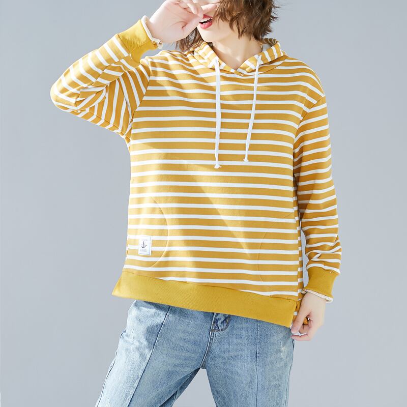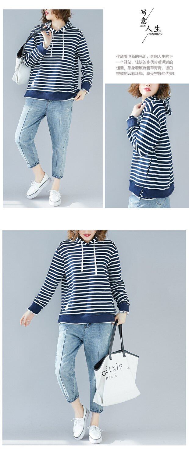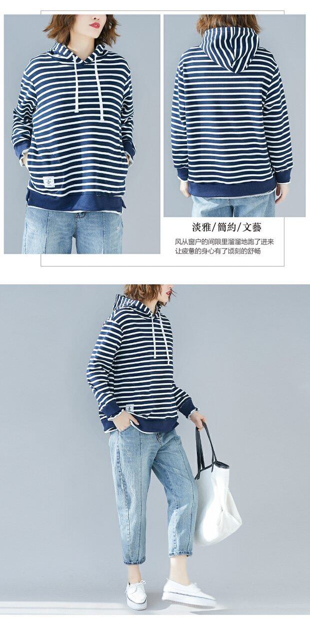 プラスサイズの女性の2019年の新しい春の脂肪mmトップスは薄く、年齢を減らす純綿のストライプのルーズドローストリングフード付きセーター コットン 大きめサイズ スプリング 春物 ピュア TB2-8 TB2-88949944341