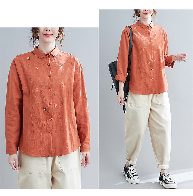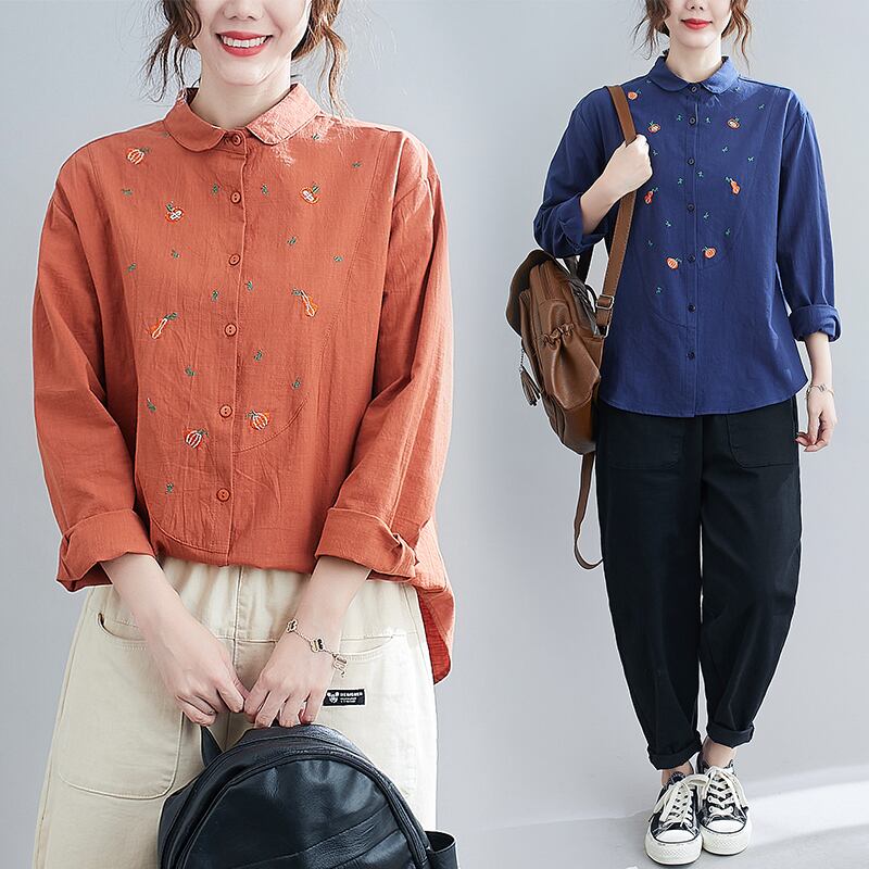 2021年春の新作ファットmm文芸漫画刺繍綿とリネンシャツ女子学生オールマッチカジュアル長袖シャツ潮 ロング コットン スプリング 春物 TB2-8 TB2-894822797260
