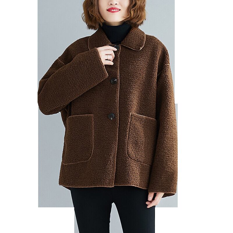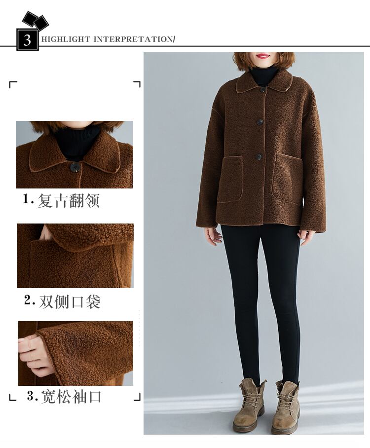 ファットシスターMMプラスサイズの女性用ターンコートルーズウエスタンスタイルオールマッチ年齢を減らすワイルドラムウールカーディガン女性の秋と冬の新しいスタイル2021 大きめサイズ オータム 秋物 ウィンター 冬物 TB2-292263679767