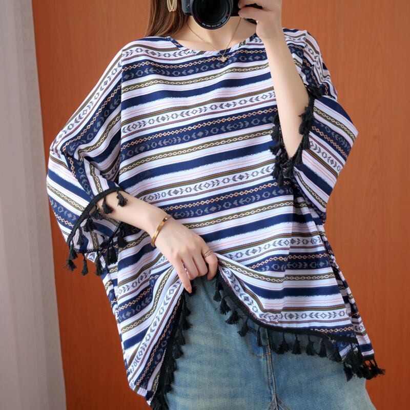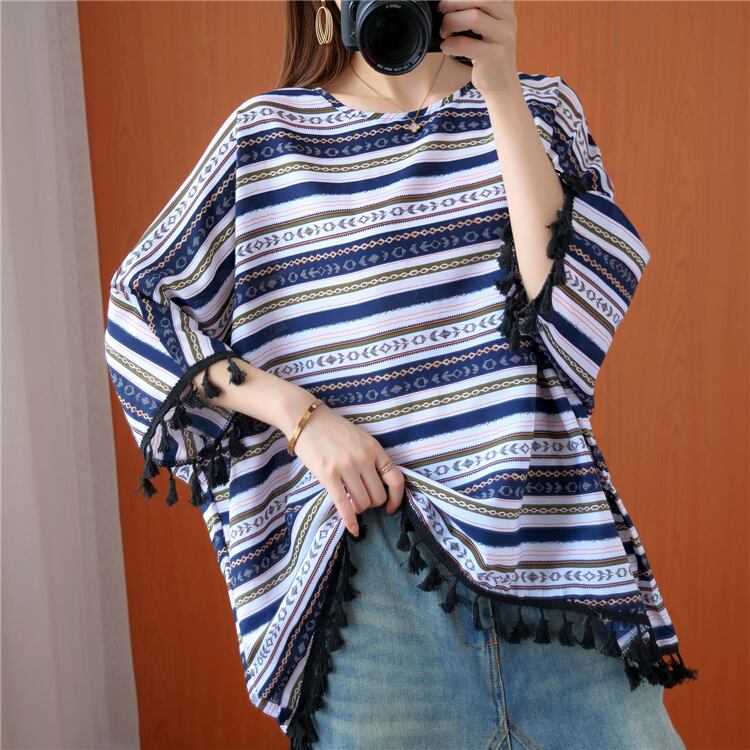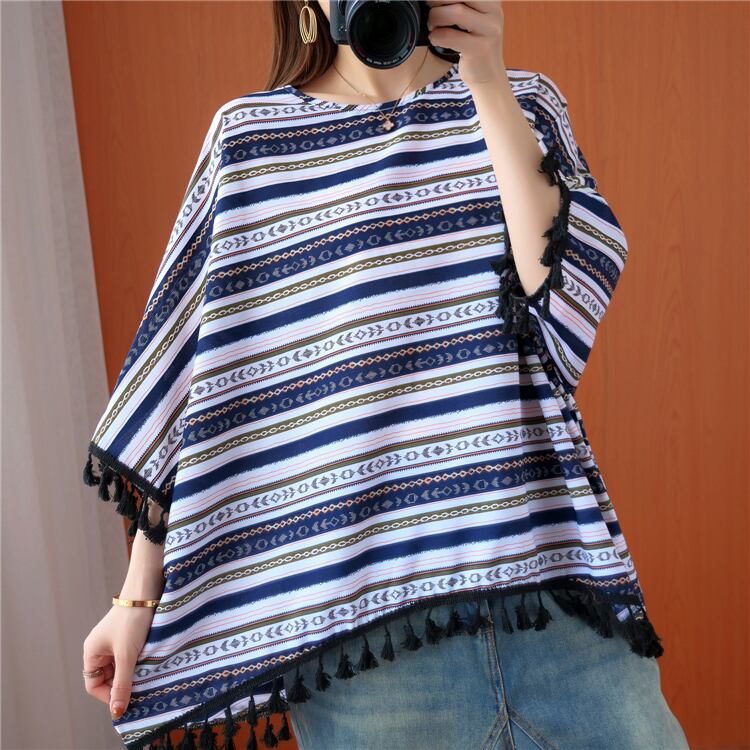 プラスファットプラスサイズレトロプリント半袖Tシャツ女性ファットシスターmmフリンジレースバットスリーブトップス2021年春 大きめサイズ スプリング 春物 TB2-228932240438