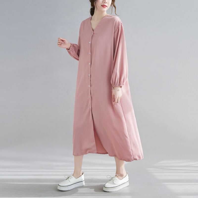 ファットシスタープラスサイズドレス女性ルーズウエストウエストスリミングシングルブレストVネックミディスカート女性春新作2021年 大きめサイズ スプリング 春物 TB2-2141324726
