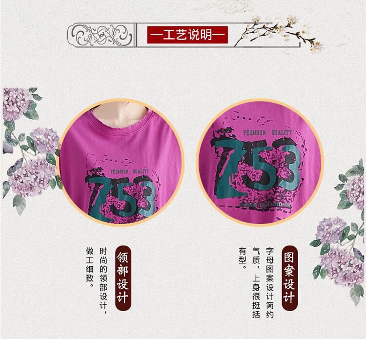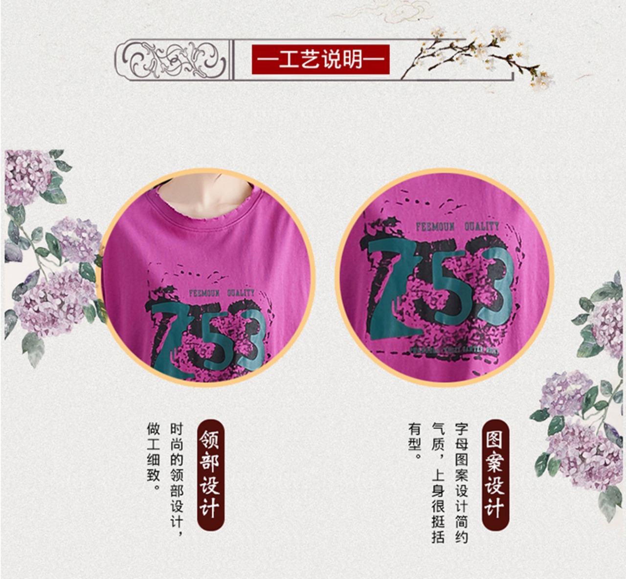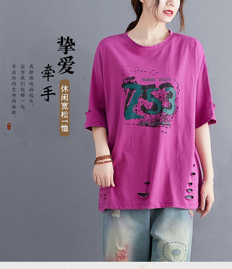 穴とルーズホール、ルーズで用途の広い女性用半袖プラスファットプラストップス、ファッショナブルで薄い、純綿の5点スリーブTシャツのバージョン コットン ピュア TB2-8 TB2-891131597735