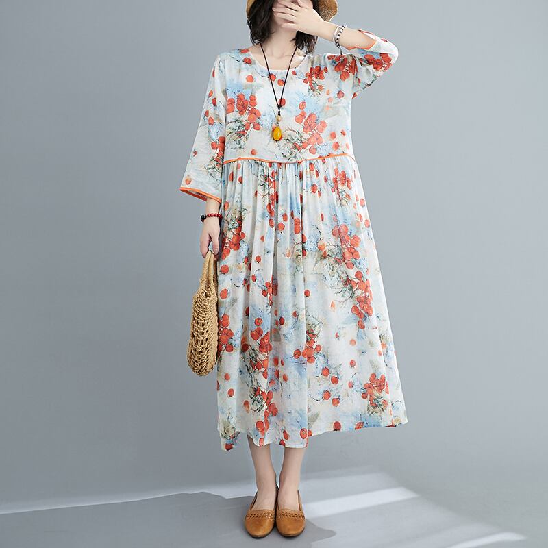 大きいサイズのドレスファットシスターmmウエスタンスタイルの年齢を減らし、薄い花柄の長袖ミドルスカート2021年春の新しい女性 ロング 大きめサイズ スプリング 春物 TB2-241478086382