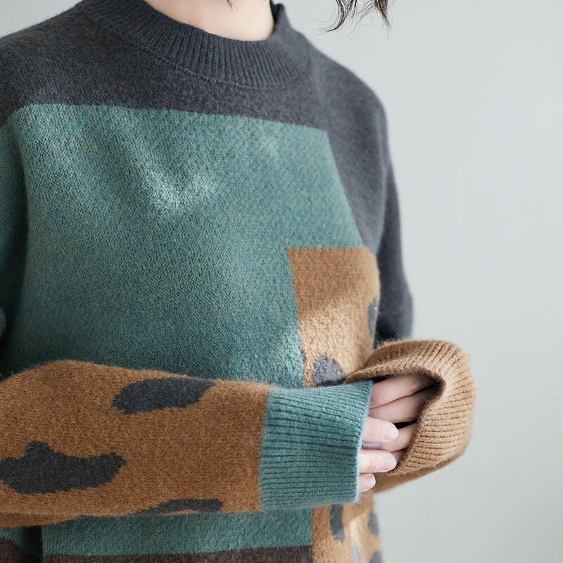 ファットシスタープラスサイズのブラウス女性ルーズで薄いオールマッチカラーコントラストヒョウニットセーター女性2020新しい秋と冬 大きめサイズ オータム 秋物 ウィンター 冬物 TB2-27938977500