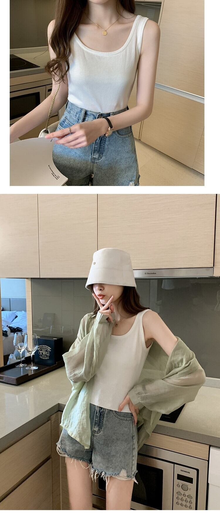 スリムなノースリーブトップ、ワイルドなショートボトミングシャツ、薄いアウターを備えたニットキャミソールレディースサマースーツ 夏物 TB2-6 TB2-620204901588
