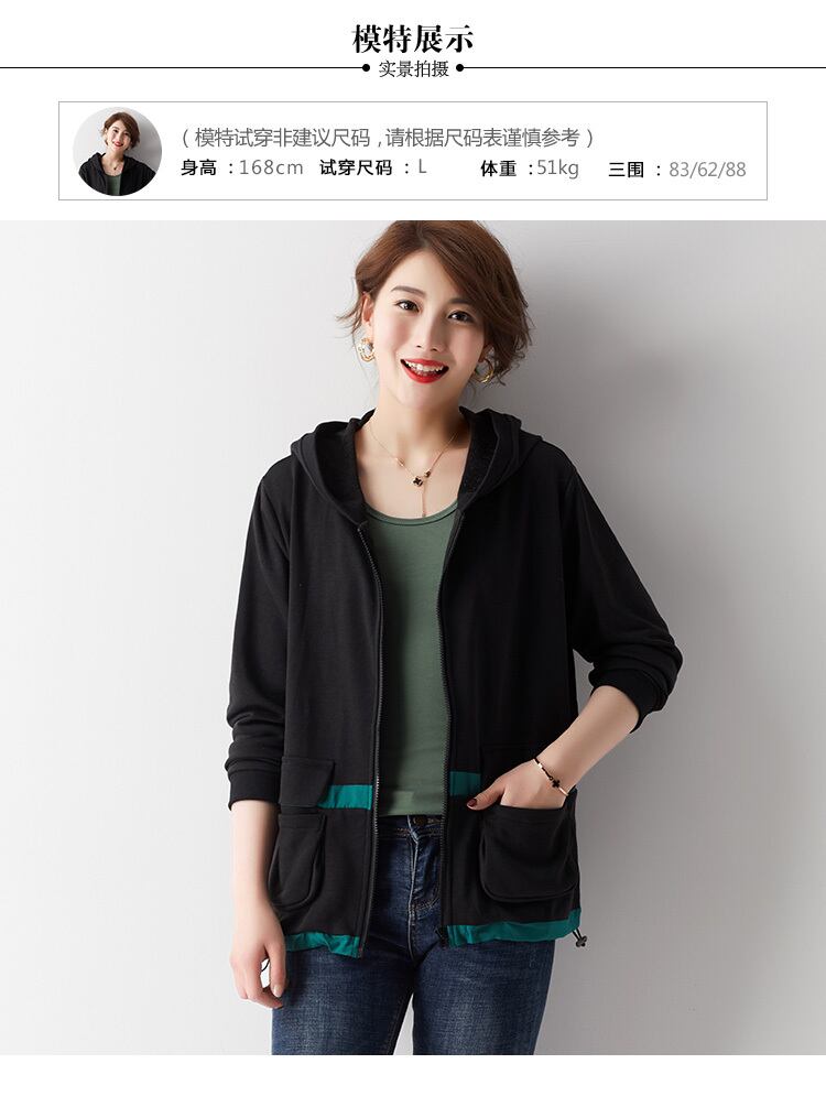 春の新作2021年ルーズラージサイズステッチコントラストカラーフード付きジャケット女性太った妹は薄いワイルドカーディガンセーター 大きめサイズ スプリング 春物 TB2-262134123217