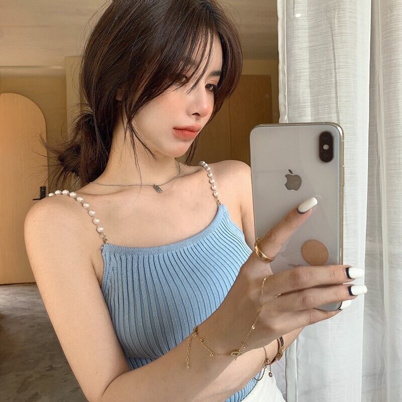 ベスト女性サマーウェアインセクシーニットパールスモールスリングスタイルスリムノースリーブインナーベースコート 夏物 真珠 TB2-6 TB2-674139927700