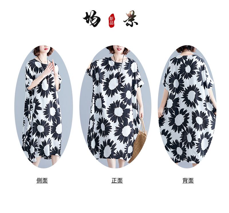 大きいサイズのドレスは薄くて年齢を減らす洋風ファットシスタールーズファッションプリントロングスカート女性2021年夏の新トレンド 大きめサイズ サマー 夏物 TB2-21005661023