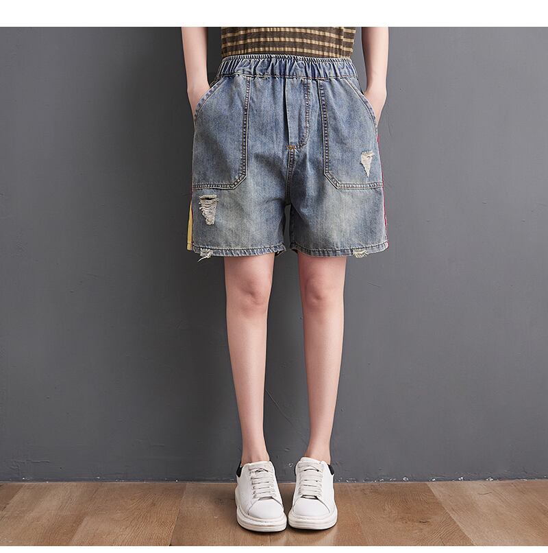 ファットシスタープラスサイズレディースリテラリーデニムショーツルーズレトロウォッシュドユーズド加工ストレートレッグパンツ2021夏新作スタイル 大きめサイズ サマー 夏物 ブルマー TB2-23981477138