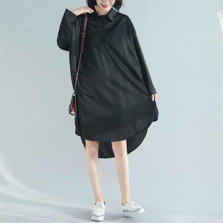 太った女性が腹隠しミートドレスルーズラージサイズポロカラー非対称シャツスカート春新作2021年 大きめサイズ スプリング 春物 TB2-210254676470