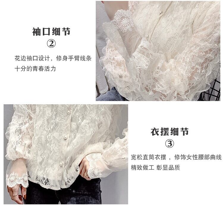 気質スーパーフェアリースタンドアップカラーレースシャツ2021年春ウィメンズニュースタイルエインネットヤーンボトミングシャツオールマッチ長袖シャツ ロング スプリング 春物 TB2-6 TB2-663716510371