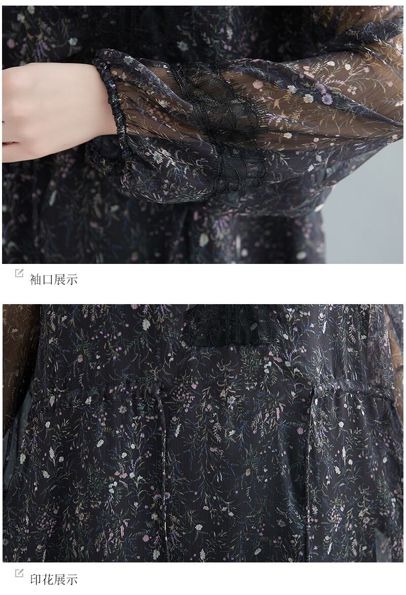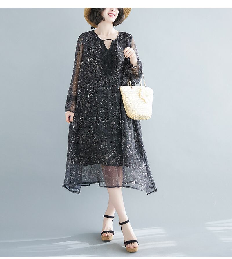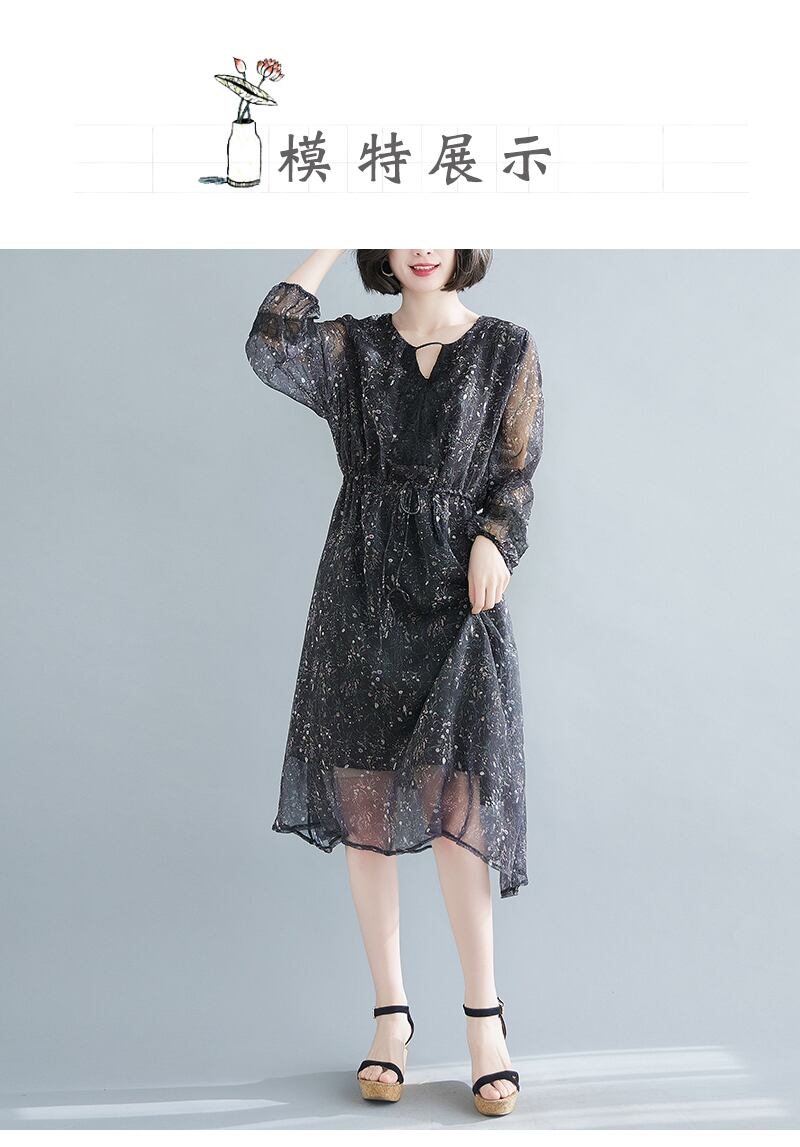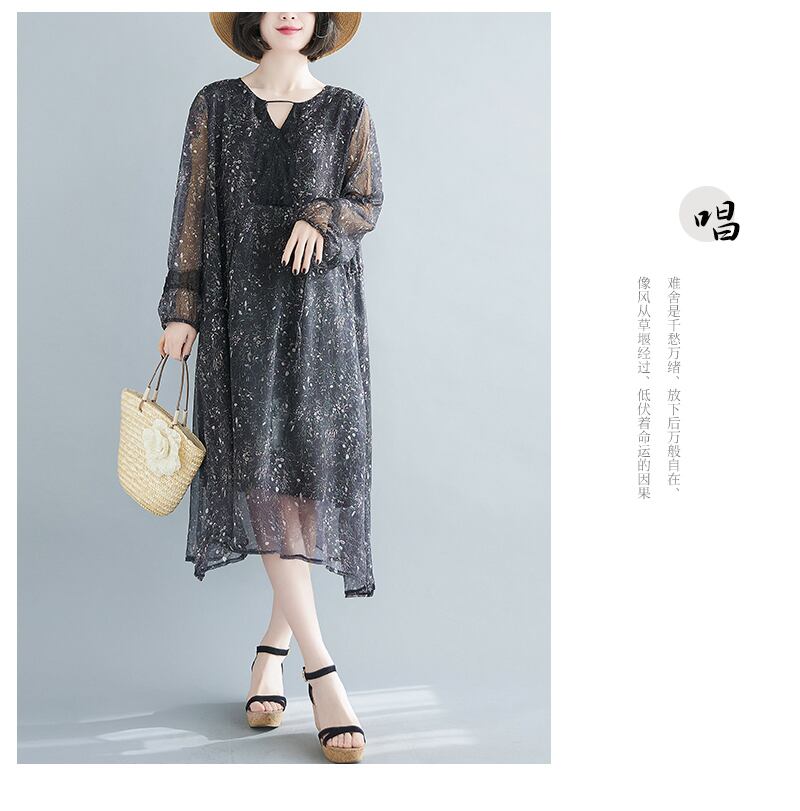 太った女性が腹をスリミングするドレスをカバーする文学プラスサイズの印刷薄い長袖シフォンスカート女性の春新しい2021 ロング 大きめサイズ スプリング 春物 TB2-295133820739
