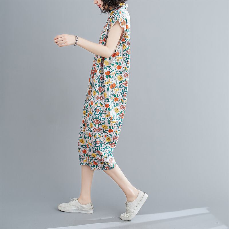 ファットシスターアートプリントジャンプスーツ女性ルーズラージサイズウエスト厚カバー腹ポロカラーカジュアルパンツ女性サマードレス2020 大きめサイズ 夏物 TB2-268676885263