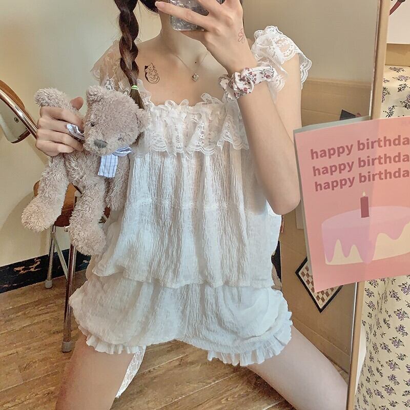 パジャマ女性2021年夏新しいイン風かわいいレーススリングネット赤爆発ホームサービススーツツーピース レッド 大人ガーリー スウィート キュート カジュアル サマー 夏物 TB2-6 TB2-64161916258