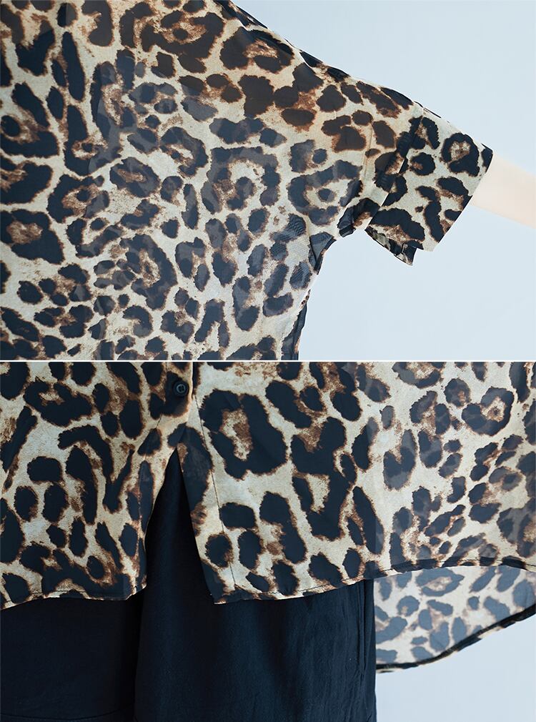 ラージサイズシャツ女性薄片ファットシスターサマードレス2021新しいルーズエイジを減らすチベットの肉と薄いヒョウ柄のカバーベリートップ 大きめサイズ 夏物 TB2-279915341884