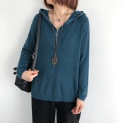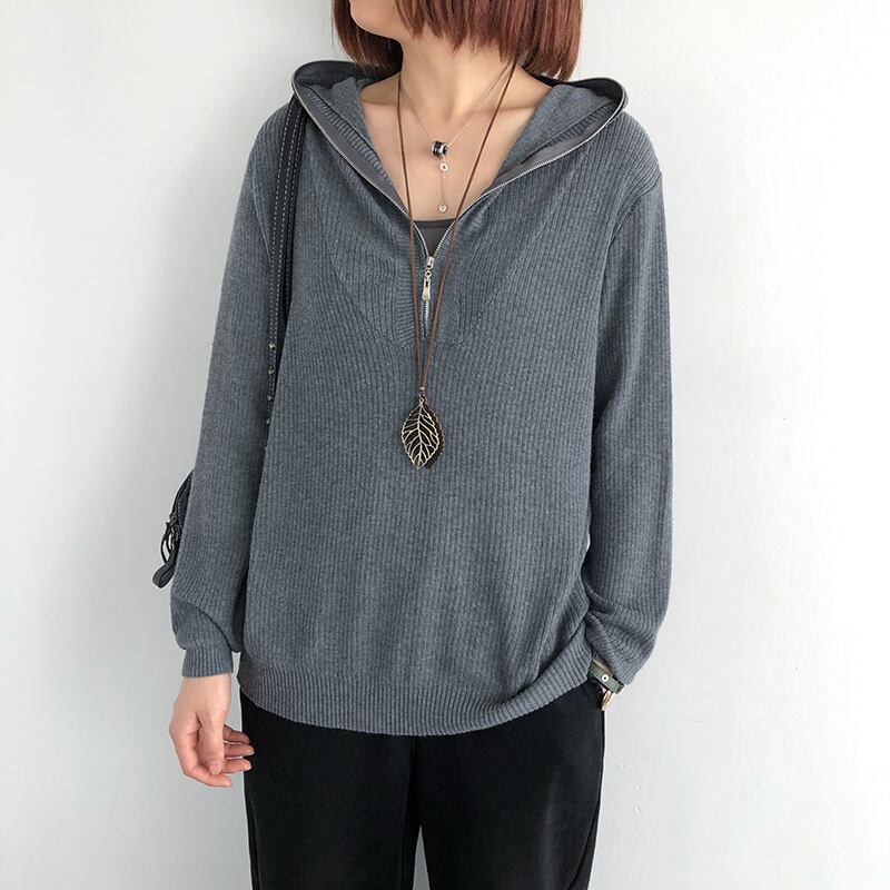 文学と芸術レトロプルオーバージッパーフード付きセーター女性秋新しいルーズカジュアル無地スリム長袖セーター ロング オータム 秋物 ソリッドカラー TB2-9 TB2-93101346751