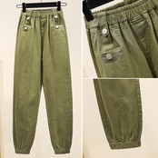 春先の新しい2021ハイウエストストレッチルーズカジュアルオーバーオールファットMMプラスサイズの女性用ストレートクロップドパンツ 大きめサイズ スプリング 春物 TB2-8 TB2-832986700360