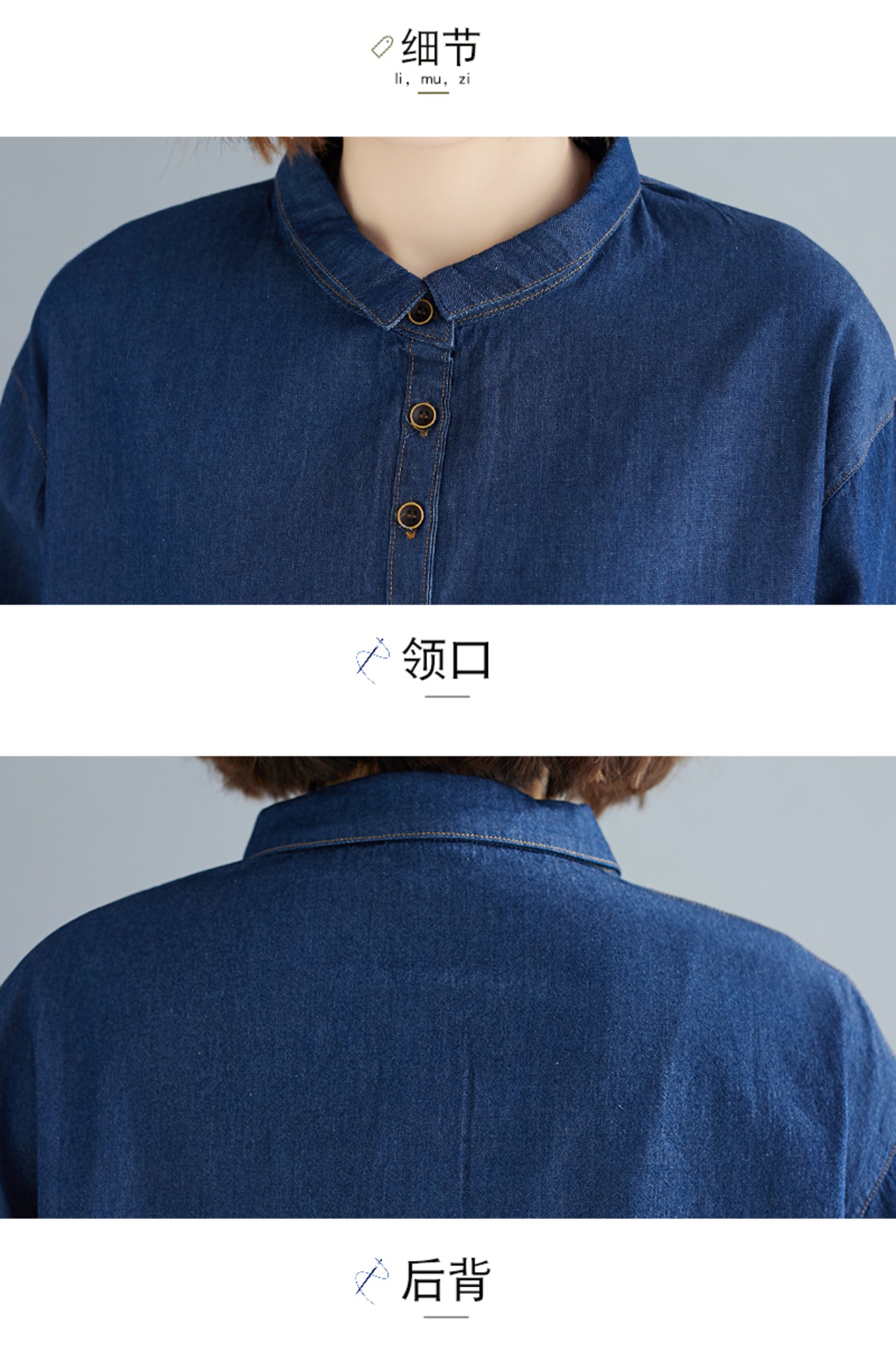 ファットシスタープラスサイズのブラウスの女性はルーズで薄いオールマッチのシングルブレストウォッシュドデニムシャツの女性は2021年春に新作 大きめサイズ スプリング 春物 TB2-239817571274